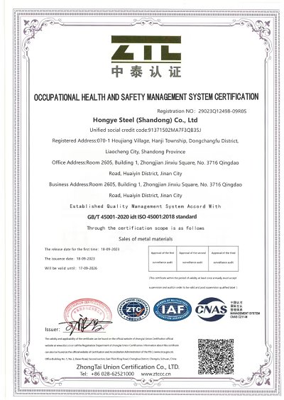 Hongye Steel's products cover various specifications of steel, steel plates, steel pipes, etc., which are widely used in construction, machinery, automobiles, ships, petrochemicals and other fields. The company always adheres to the principle of quality first and customer first, and has won the trust and support of our customers with high-quality products and services.